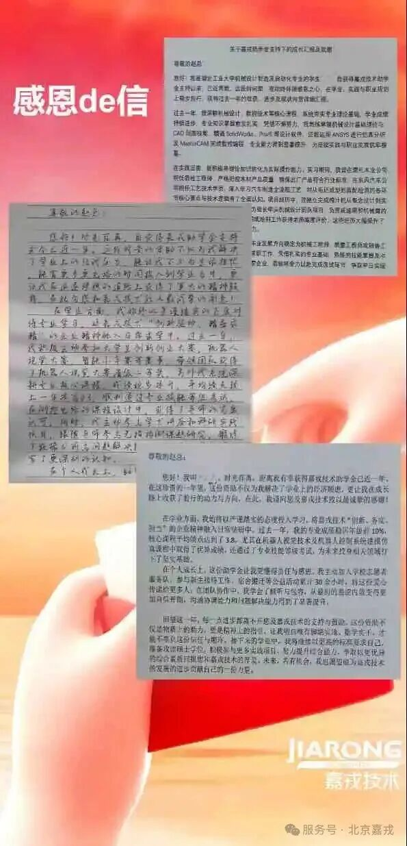 近期,我陆续收到了多位受嘉戎技术(北京)助学金支持的湖北工业大学机械工程学院的同学寄来的成长汇报信。字里行间流露的真挚谢意、踏实进取的学习态度、丰硕的成长成果,这可能是近期最让我开心、最感动的一件事。
