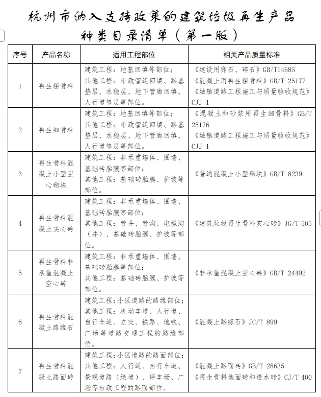 杭州市建筑垃圾资源化利用支持政策