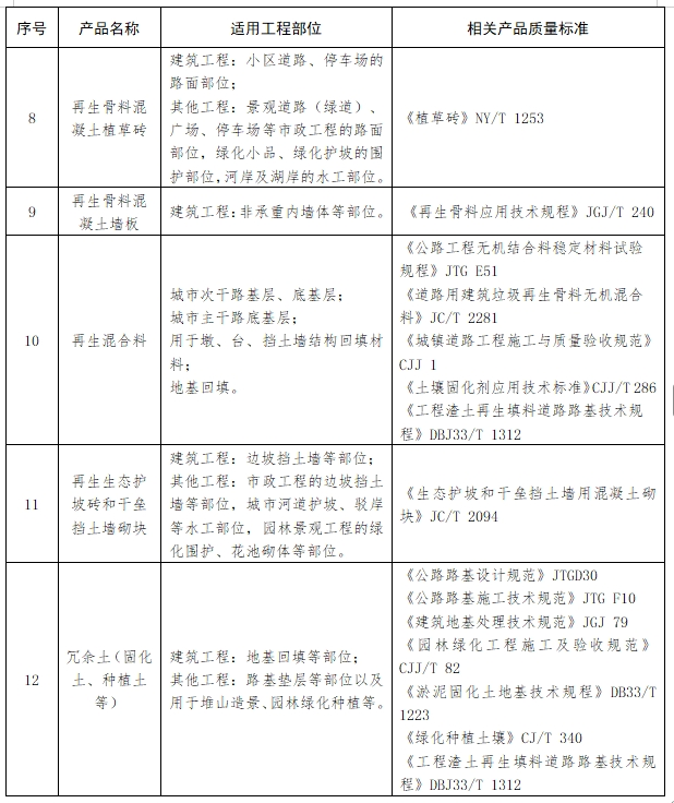 (2)新增列入省建设厅《建筑垃圾综合利用产品主要种类、适用工程部位及质量标准参考目录》(以下简称《参考目录》)。